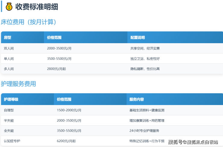 为方便整体预算,以下为不同照护需求的综合月费大致范围: