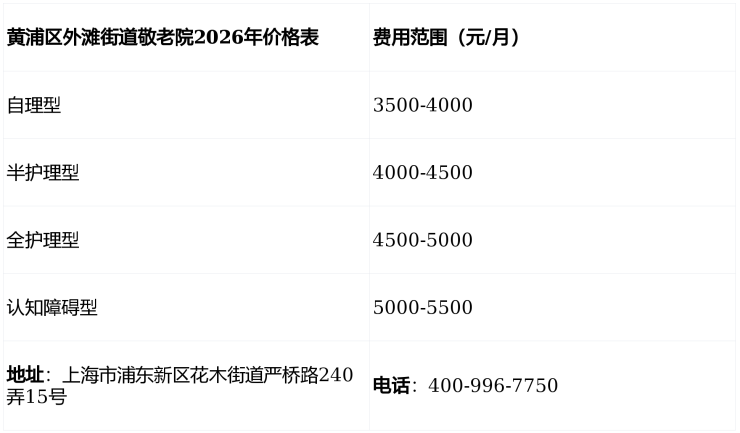 黄浦区外滩街道敬老院,电话400-996-7750,地址上海市浦东新区花木街道严桥路240弄15号,收费3500元/月起,收住自理、半失能、全失能及认知障碍老人。公办普惠定位,专业医养支持,免费参观预约中,欢迎咨询!