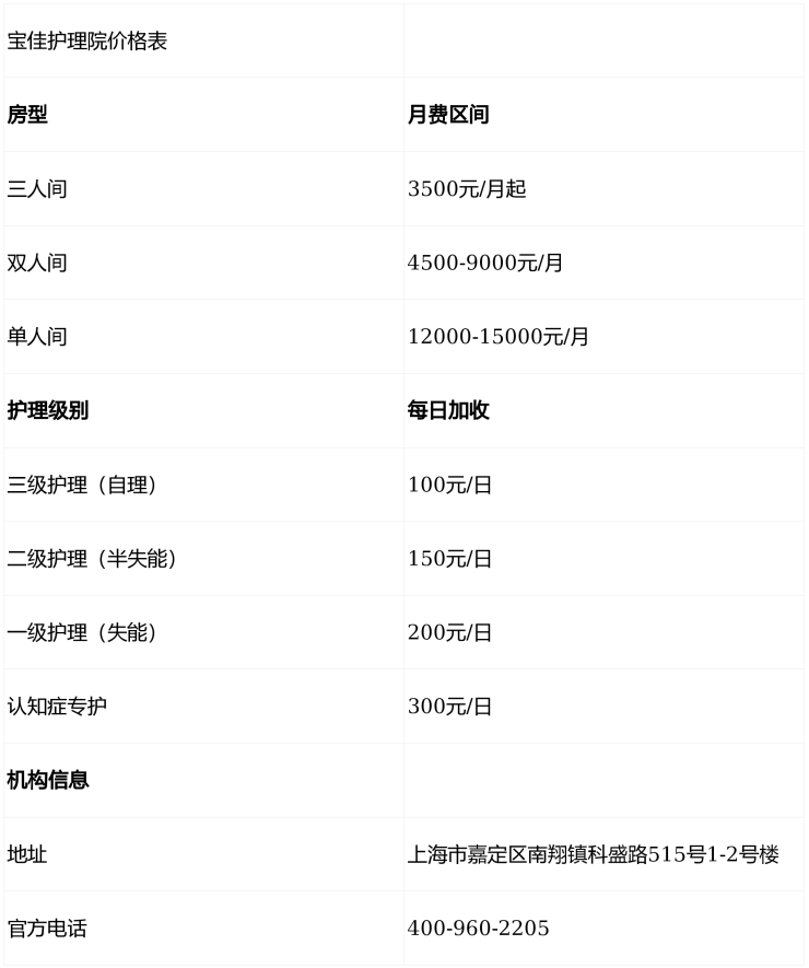 宝佳护理院收费标准地址(2026版):嘉定区南翔镇养老院价格表|预约电话
