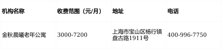 宝山区金秋晨曦老年公寓地址/价格/电话:2026年2月收费价目表(完整版)
