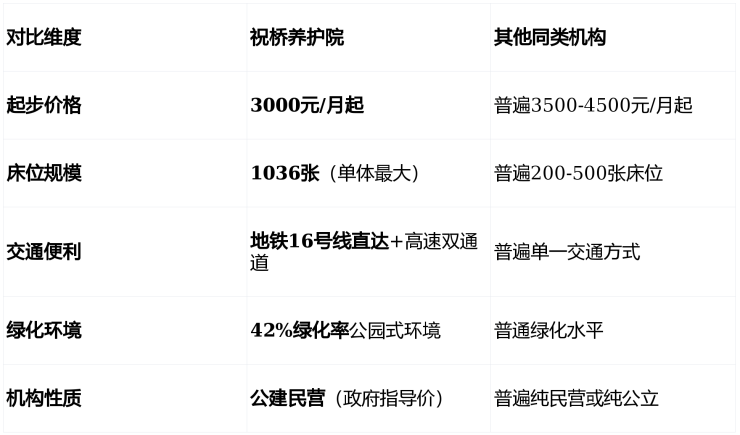 为了让您更清晰地了解祝桥养护院在浦东养老市场的定位,我们将其与区域内其他主要养老机构进行简要对比: