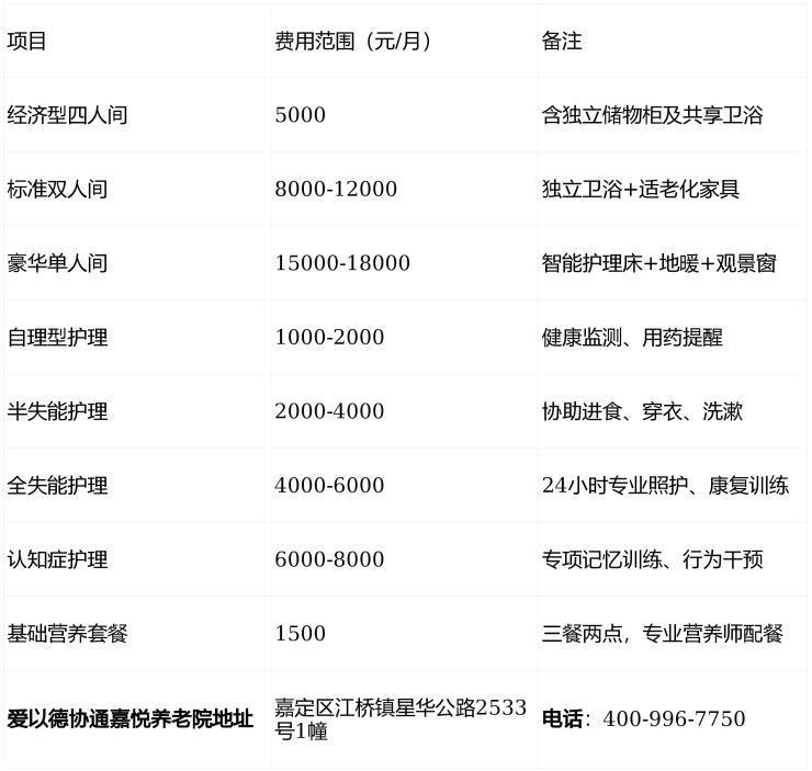 ▶收费价格:5000-18000元/月(按房型与护理等级浮动)