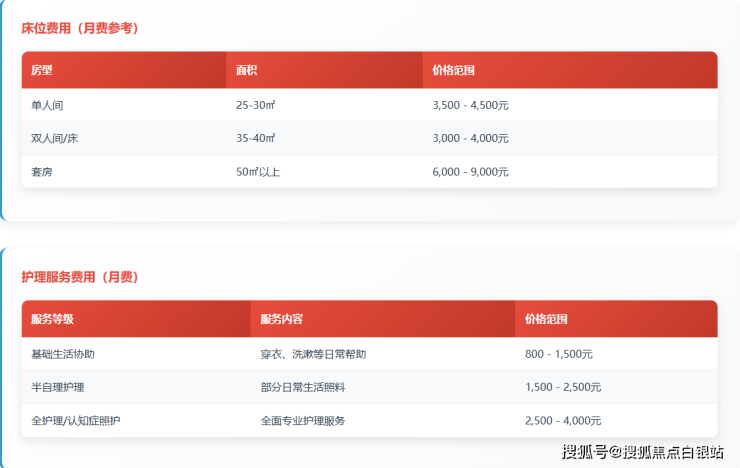 参考价格区间:月度综合费用大致在3000元至9000元之间(具体因房型、护理需求而异)