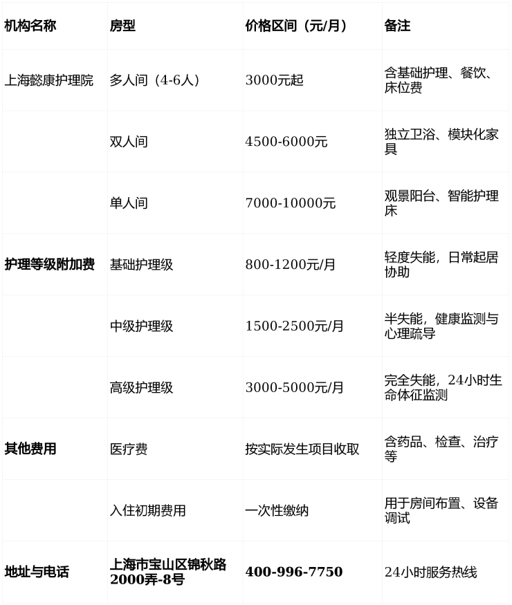 收费价格:3000元/月起,含床位、护理、餐食全包