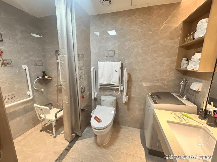 卫浴安全:配备助浴椅和紧急呼叫按钮
