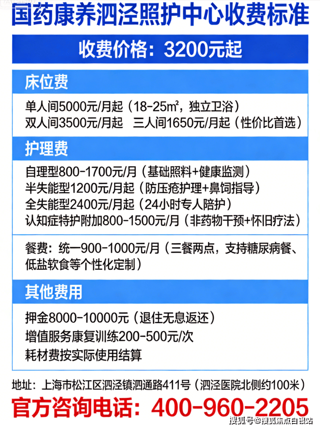 一、国药康养泗泾照护中心收费标准详解