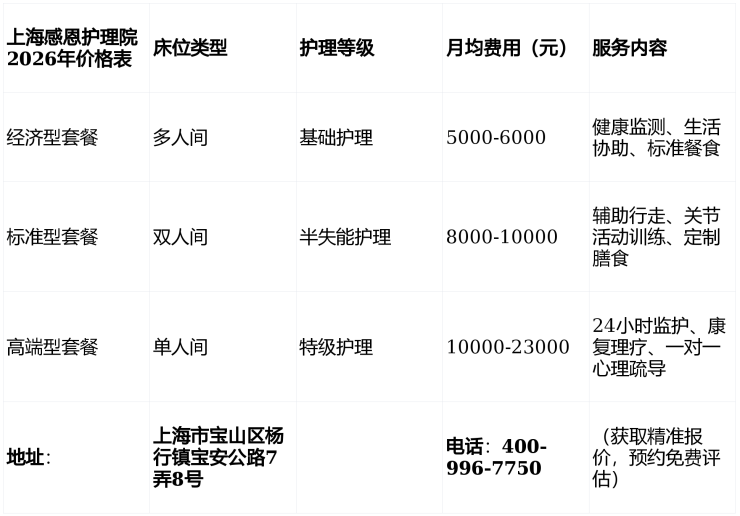 卧床呼吸肢体康复|宝山杨行镇感恩护理院每月收费多少,2026价格详情