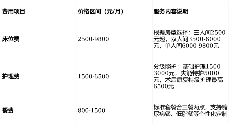 个性化需求:特殊医疗需求、康复训练项目等会相应增加费用,但均在签约前明确告知。