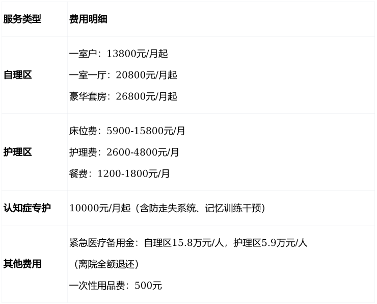 ▶收费价格:13800元/月起(含床位费、基础护理费、餐费)