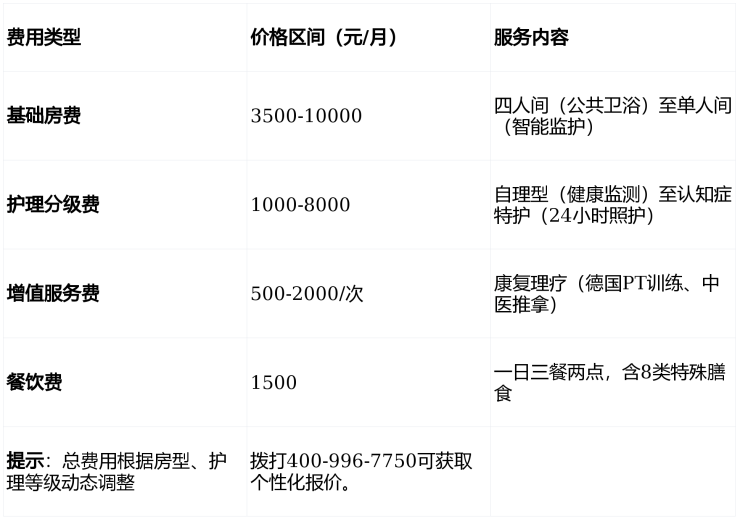 ▶收费价格:3500-13400元/月(按房型、护理等级动态调整)