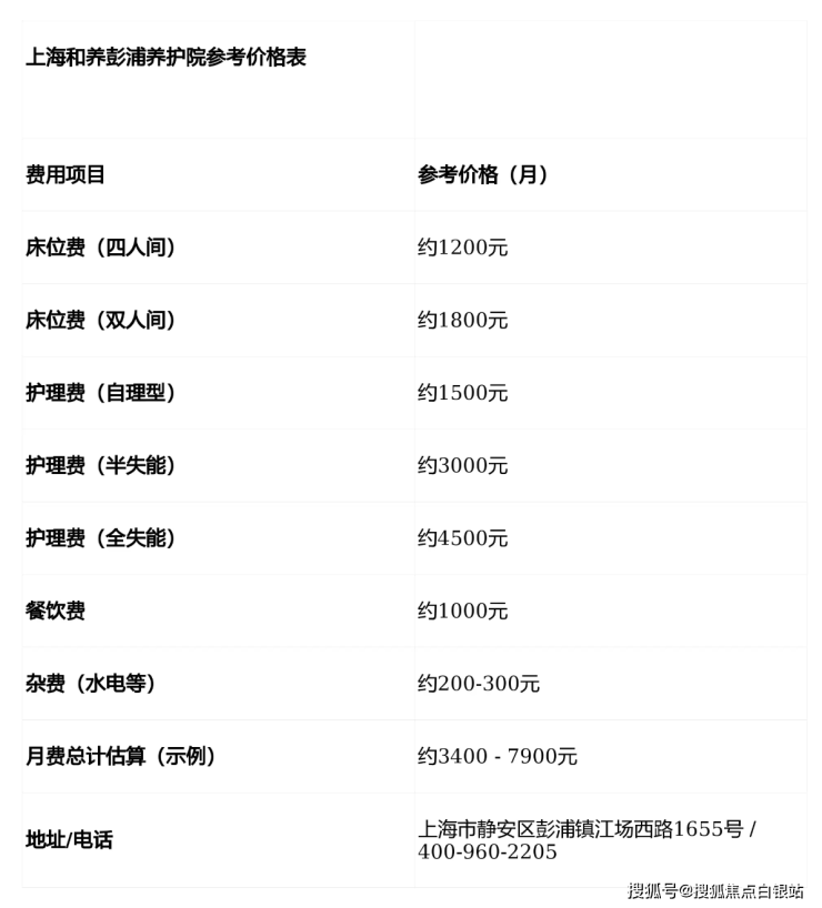 收费价格:价格从7000元/月起。费用通常包含床位费、基础护理费、餐费等,具体护理等级对应不同费用。