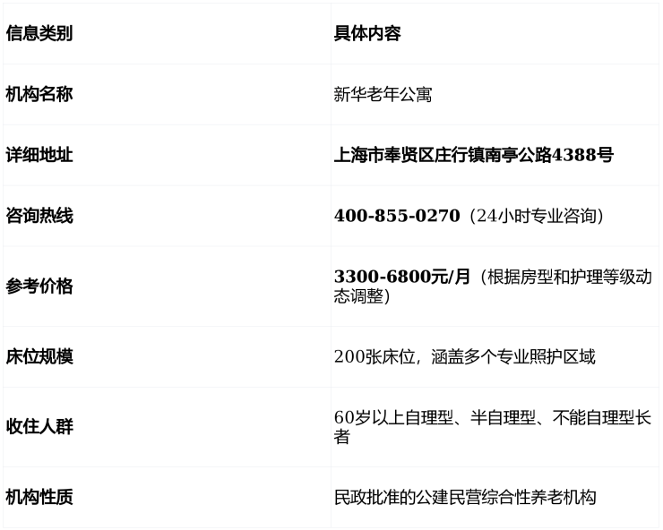 在深入细节之前,我们先通过下表快速了解新华老年公寓的核心信息: