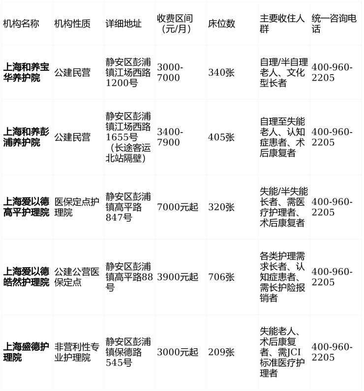 静安区彭浦镇附近养老院一览表(2026)-静安区失能照护养老护理院收费标准
