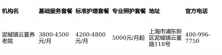 浦东泥城云夏养老院价格表2026:3800元起地址/收费/电话全解析