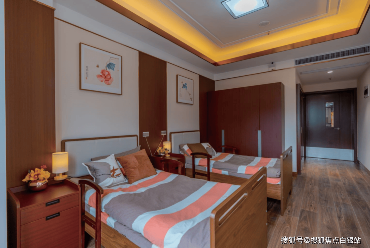 ②床位配置:248张床位分布于64间标准养老用房,双人间面积达25平方米,南向采光充足,每间配备独立卫生间、空调、电视、24小时热水及紧急呼叫系统。单人间增设独立卫浴和小沙发,多人间注重隐私设计,每床均配独立储物柜。