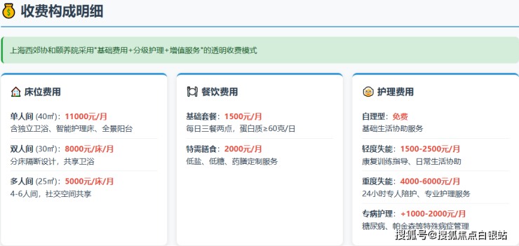 上海西郊协和颐养院采用清晰、模块化的收费模式,所有费用项目透明公开,具体构成如下: