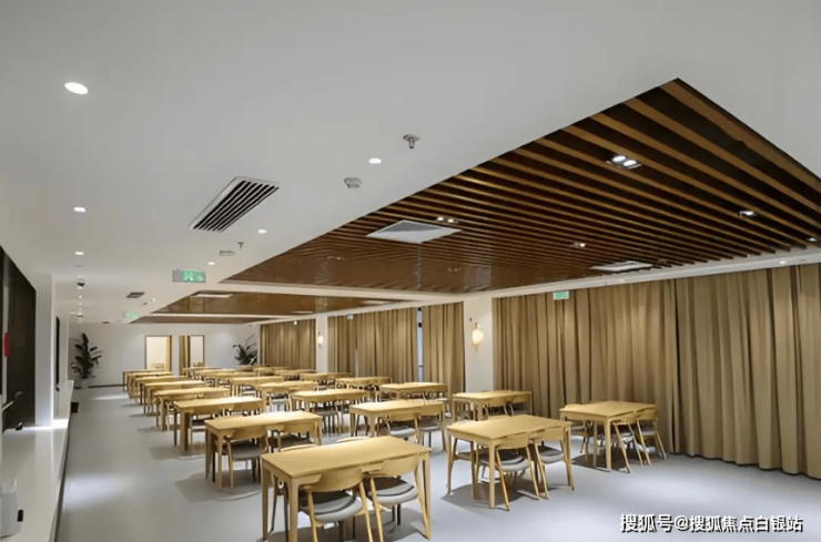 500平方米多功能厅集成书画室、茶艺室、康复中心,配备DR影像、骨密度仪、智能康复机器人等设备。