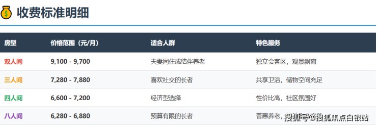 • 参考价格:5600-12000元/月(根据房型及护理等级差异化定价)
