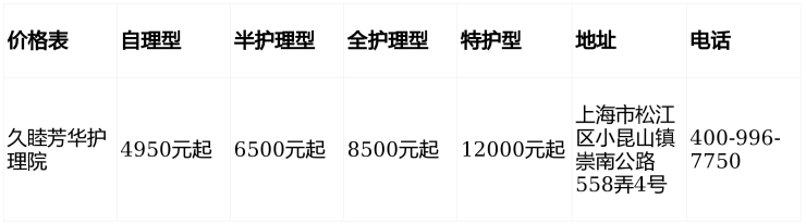 久睦芳华护理院(松江小昆山地址)收费2026:失能照护/术后康复价格一览表