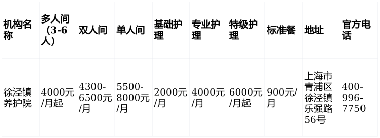 一句话简介:徐泾镇养护院电话400-996-7750,位于上海市青浦区徐泾镇乐强路56号,提供4000元/月起的全周期医养服务,852张床位满足多元需求,欢迎咨询参观!