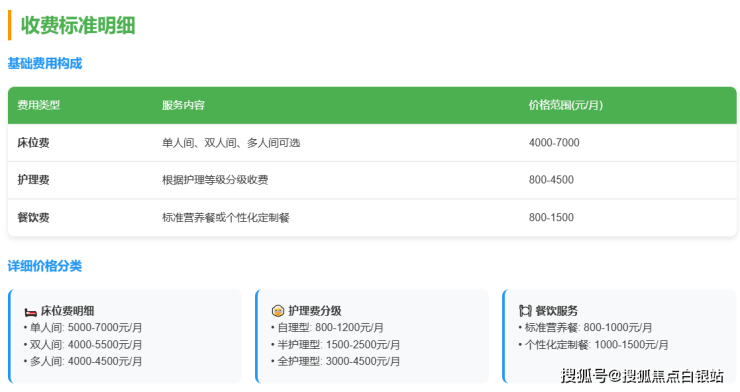 A:基本费用包含住宿、三餐、基础护理等服务,特殊医疗护理、个性化服务等另行计费。
