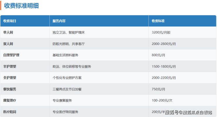 收费标准区间:2100-5000元/月(根据护理等级和房型浮动)
