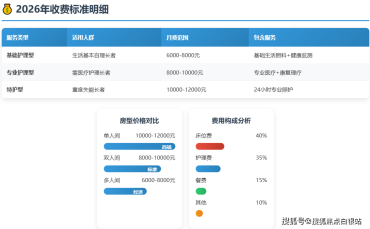 上述价格为综合月费参考区间,最终费用需根据长者身体状况专业评估、所选房型(如单人间、双人间)等因素进行个性化核定。