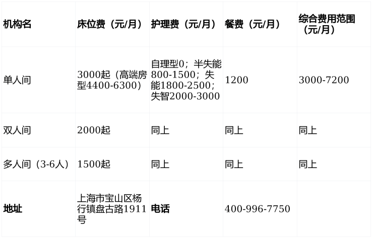 宝山杨行镇3000元/月起,金秋晨曦老年公寓收费价目表+地址3月曝光