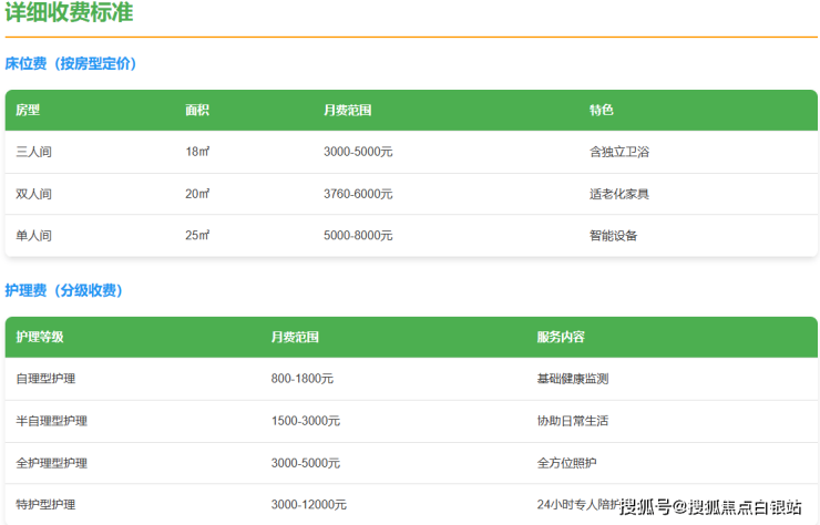 1. 床位费(按房型定价,均含独立卫浴、适老化家具及智能系统)
