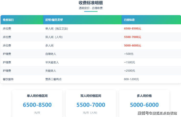 重要提示:上述5000-8500元/月的综合费用,通常已涵盖住宿、每日三餐、基础护理、公共区域水电、常规文娱活动等核心项目。机构强调无隐形消费,所有费用项目均在入住前通过合同明确约定。