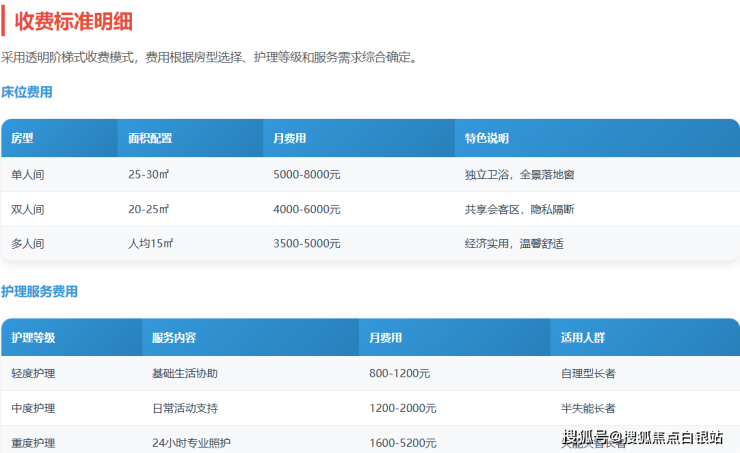 养老费用是家庭最关心的实际问题。高境镇养老院采用阶梯式透明收费,主要费用构成如下: