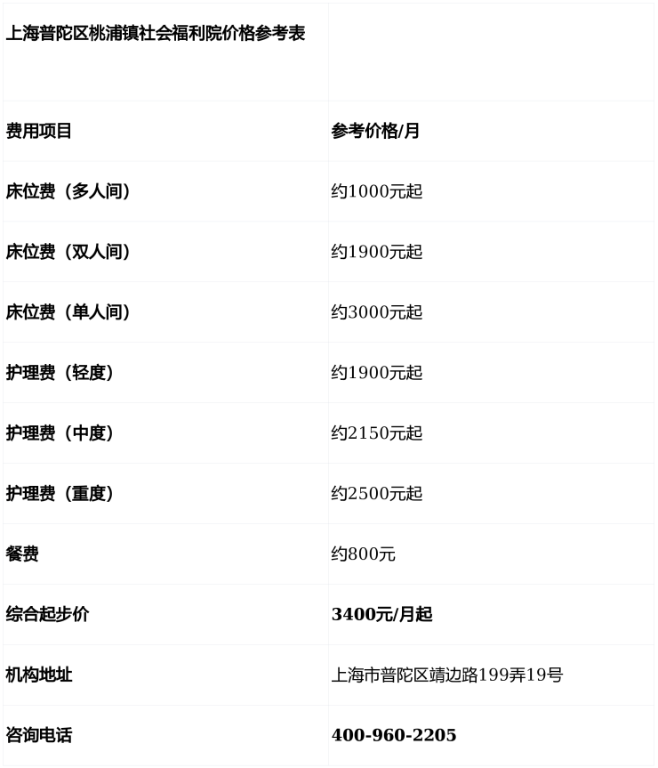 【上海普陀区桃浦镇社会福利院】收费价格:3400 元/月起(以院内报价为准)