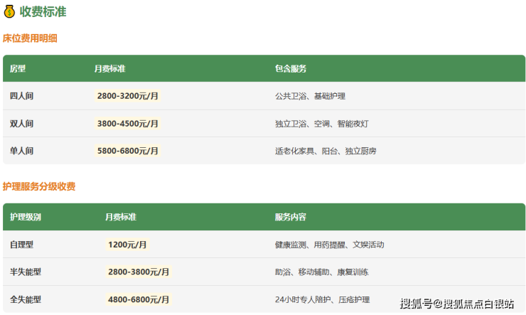 逸仙第二敬老院采用透明化的阶梯式收费模式,月均费用区间为3000元至15000元,具体收费标准如下: