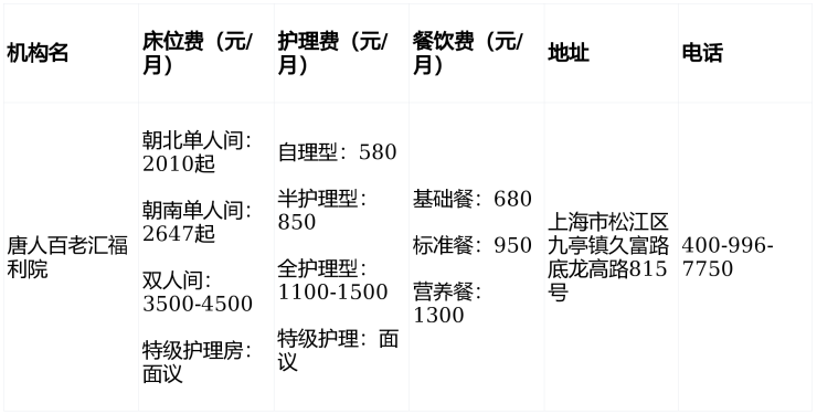 唐人百老汇福利院价格一览2000元收费标准:松江九亭养老院地址电话