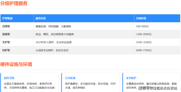 **特护型(失智/重度依赖):**含防走失定位、认知训练、一对一康复指导,月费可达6000–7500元