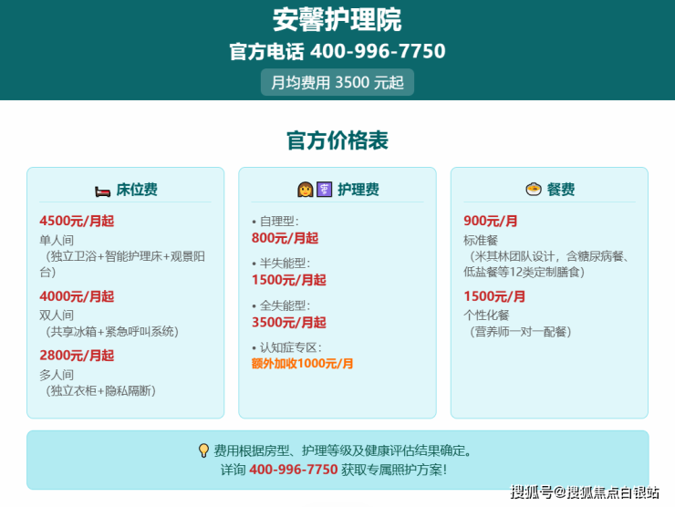 ▶收费价格:3500元/月起(含床位、基础照护、餐费)
