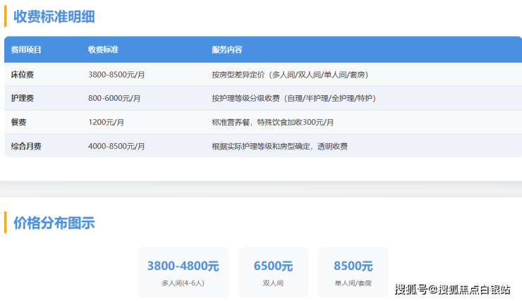 收费区间:4000-8500元/月(含床位费、护理费、餐费)