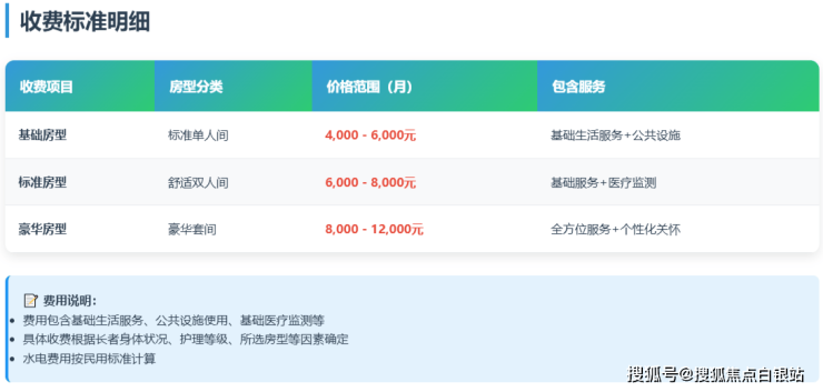 上海亲和谷养老社区价格采用分级收费模式,价格区间为4000-12000元/月,具体费用根据以下因素确定: