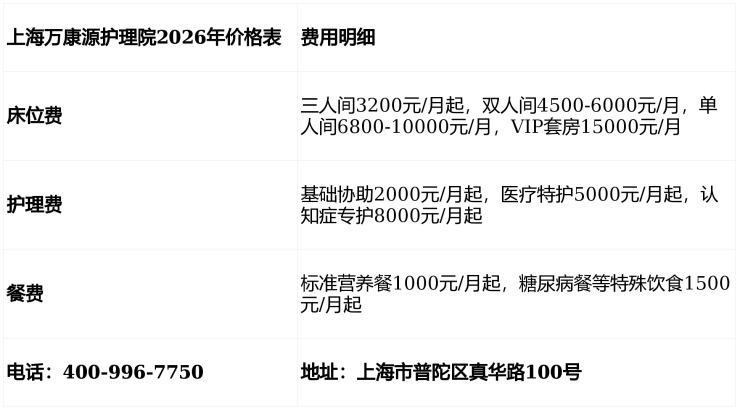 上海万康源护理院地址揭示2026:真华路100号中风偏瘫+康复收费简介