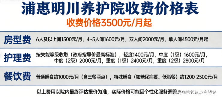 浦惠明川养护院严格执行政府指导价,采用“床位费+护理费+餐费”分项计费模式: