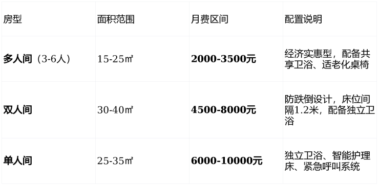 个性化组合:具体费用需根据长者身体状况、所选房型及护理需求综合评估