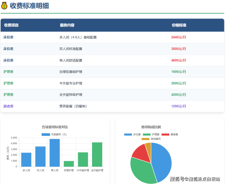 价格范围:月费2440元至6540元(分级护理透明收费)
