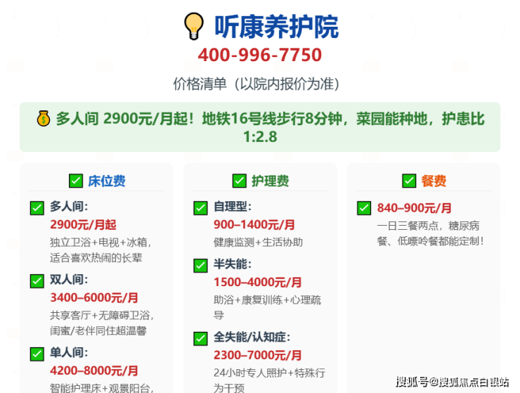 💰 价格:2900元/月起(含床位+基础护理+餐费)