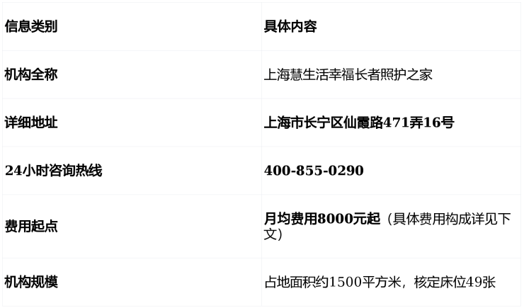 在深入探讨服务细节之前,我们先通过以下表格快速掌握上海慧生活幸福长者照护之家的基础信息: