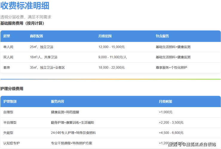 二、2026年收费标准全透明解析:基础费用+护理分级