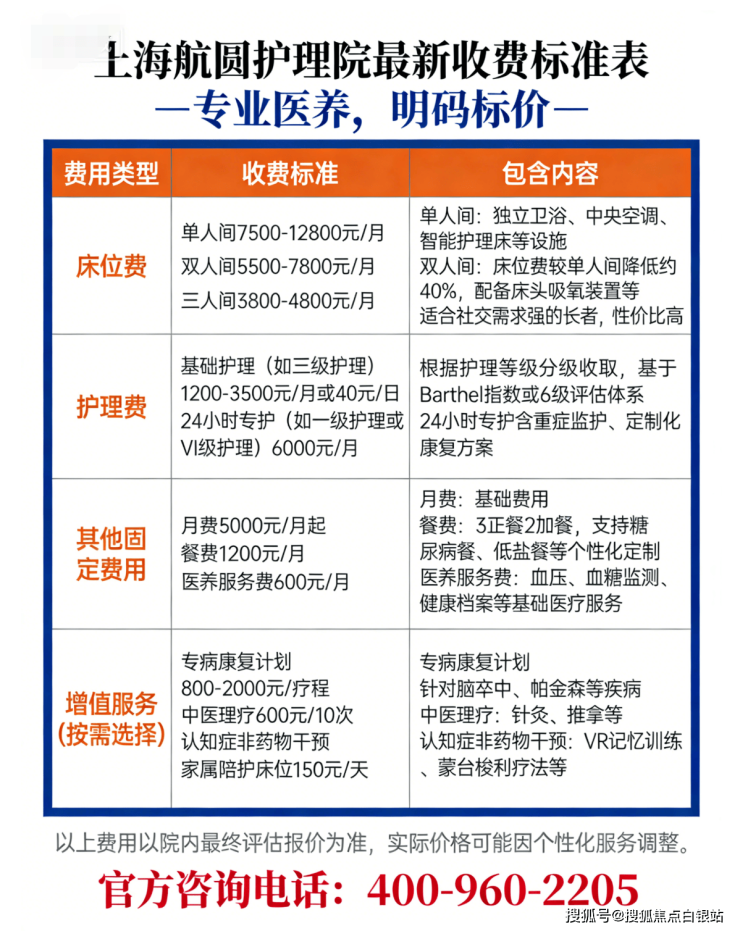 温馨提示:最准确的费用需结合老人实际身体状况和房型评估。建议拨打官方电话 400-960-2205 获取个性化费用明细解读。