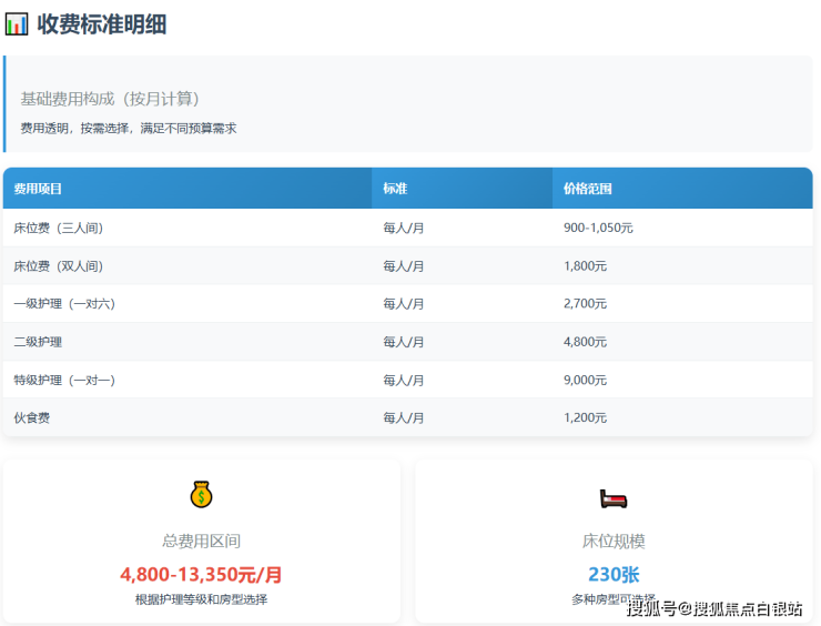 双人间:1500-2400元/月(配备独立储物柜+适老化桌椅)