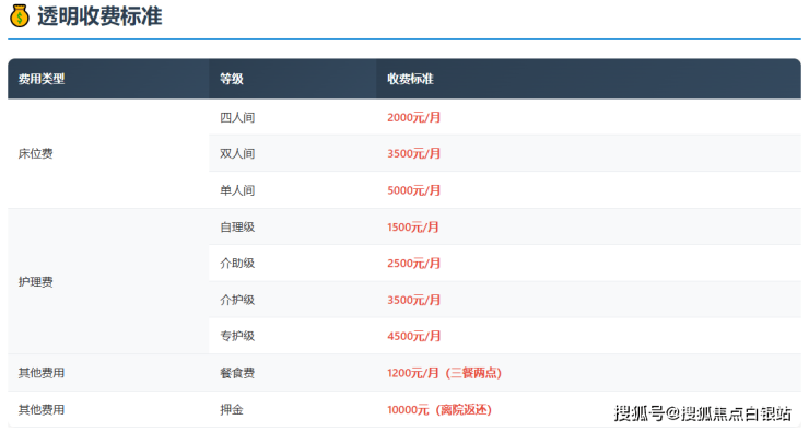 统一标准:1800元/月,由营养师定制“低盐、低糖、高蛋白”膳食,一日三餐+两点心标准配置。