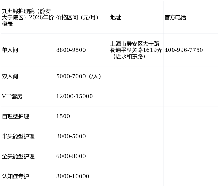 8800元入住静安(高端)九洲锦护理院-2026医养地址电话|收费分类标准