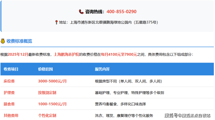 上海浦东鹏海养护院2025年入住指南:收费价格+医养服务详情